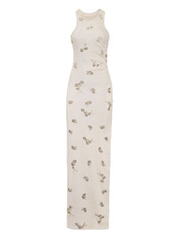floral-embellished maxi dress Highlights - White - Floral embellishment - Fine ribbed - Sleeveless - Long length - Side slit Imported Composition Fabric 100% Washing instructions Read Manufacturer Guidelines