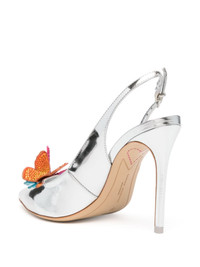 Vanessa 100mm metallic-finish pumps Highlights - Silver-tone - Calf leather - Patent finish - Metallic finish - Signature butterfly detailing - Pointed toe - Buckle-fastening slingback strap - Branded footbed - High stiletto heel - Leather sole Imported Composition Lining: Calf Leather 100% Sole: Calf Leather 100% Outer: Patent Calf Leather 100% SIZE & FIT Measurement HEEL 3.93 in(10 cm)