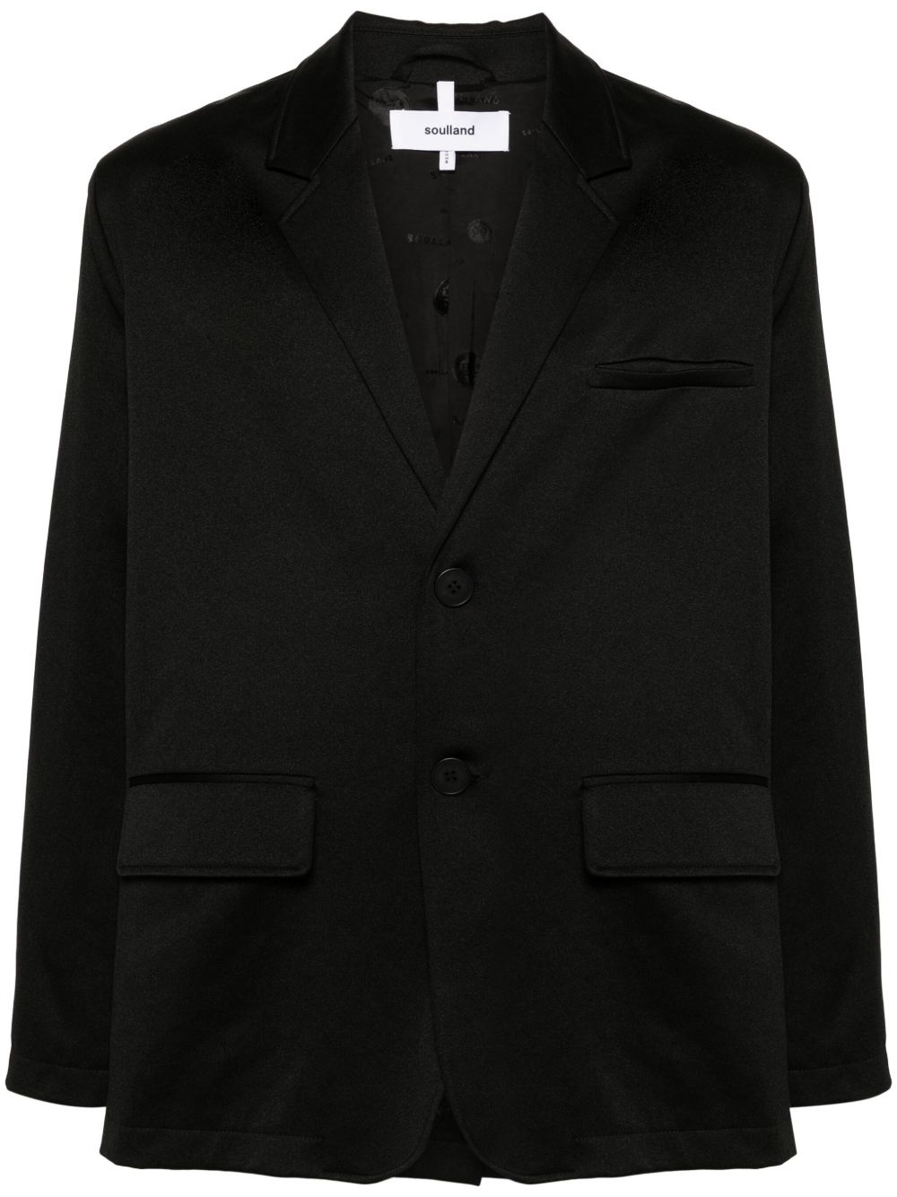 Gabe single-breasted blazer Highlights - Black - Notched lapels - Drop shoulder - Long sleeves - Chest welt pocket - Two front flap pockets - American rear vent - Logo-jacquard lining - Front button fastening Imported Composition Outer: Polyester 100% Lining: Viscose 100% SIZE & FIT Model measurements Height 6 ft 2 in(1.87 m) Bust/Chest 38.18 in(97 cm) Hips 36.61 in(93 cm) Waist 29.13 in(74 cm) FittingInformation Designed to be unstructured, offering a loose fit throughout The internal shoulder pads offer a structured shape Made from a midweight non-stretch fabric This piece fits true to size – take your usual size