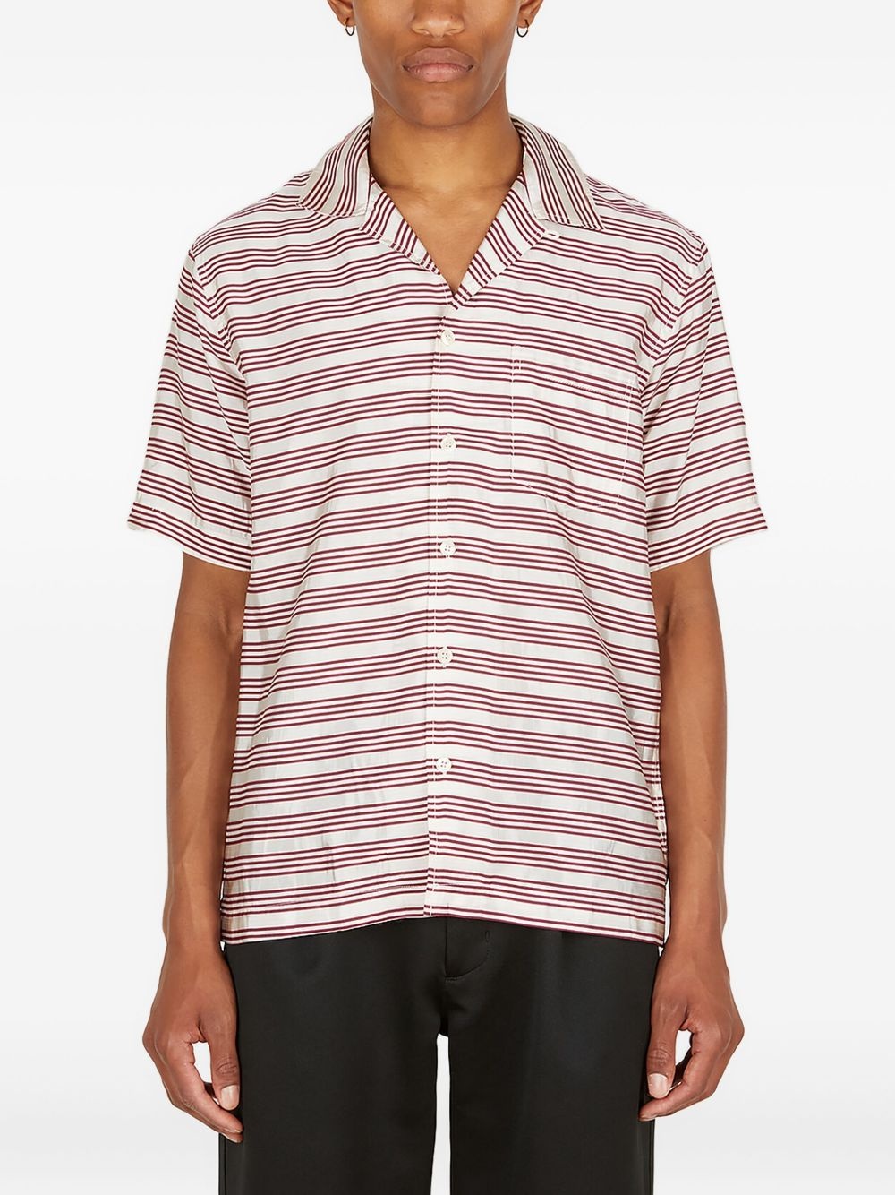 striped shirt Highlights - Red - Short sleeves - Revere collar - Button fastening - Horizontal stripes Imported Composition Viscose 86%, Polyester 14% Washing instructions Read Manufacturer Guidelines