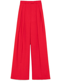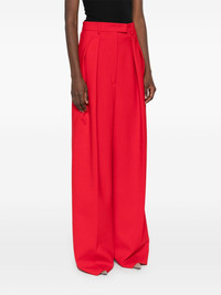 Abadan trousers Highlights - Cardinal red - Concealed front button, hook and zip fastening - Belt loops - Two side inset pockets - Two rear welt pockets Imported Composition Virgin Wool 96%, Elastane 4% SIZE & FIT Model measurements Height 5 ft 11 in(1.8 m) Bust/Chest 32.67 in(83 cm) Hips 36.22 in(92 cm) Waist 24.4 in(62 cm) FittingInformation Designed with a wide-leg cut, these trousers allow for a close fit at the waist and offer a loose and roomy fit over the leg Made from a midweight stretch fabric, this piece offers elasticity and flexibility when worn