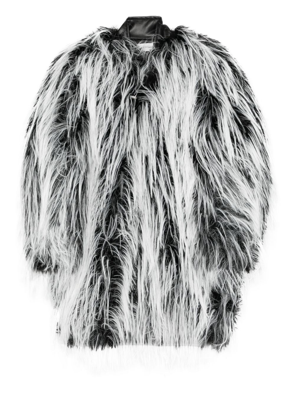 Adesso faux fur coat Highlights - Black and white - Faux fur - Long sleeves - Open front - Shaggy texture - Straight hemline Imported Composition Artificial Fur 100% SIZE & FIT Model measurements Height 5 ft 10 in(1.77 m) Bust/Chest 33.07 in(84 cm) Hips 37 in(94 cm) Waist 24.8 in(63 cm) Washing instructions Read Manufacturer Guidelines