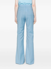 Aeroso 1234 trousers Highlights - Blue - Interlock twill weave - Melange effect - Concealed front button, hook and zip fastening - High-waisted - Belt loops - Pressed crease - Two side slash pockets - Dart detailing - Two rear welt pockets - Flared hem Imported Composition Virgin Wool 46%, Mohair 30%, Polyester 24% SIZE & FIT Model measurements Height 5 ft 9 in(1.75 m) Bust/Chest 34.64 in(88 cm) Hips 36.61 in(93 cm) Waist 26.37 in(67 cm) FittingInformation Designed with a flared hem, these trousers allow for a close fit at the waist with a slim fit over the leg and widening towards the hem The unfinished hems allow for the length to be altered Made from a midweight non-stretch fabric