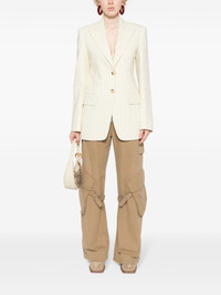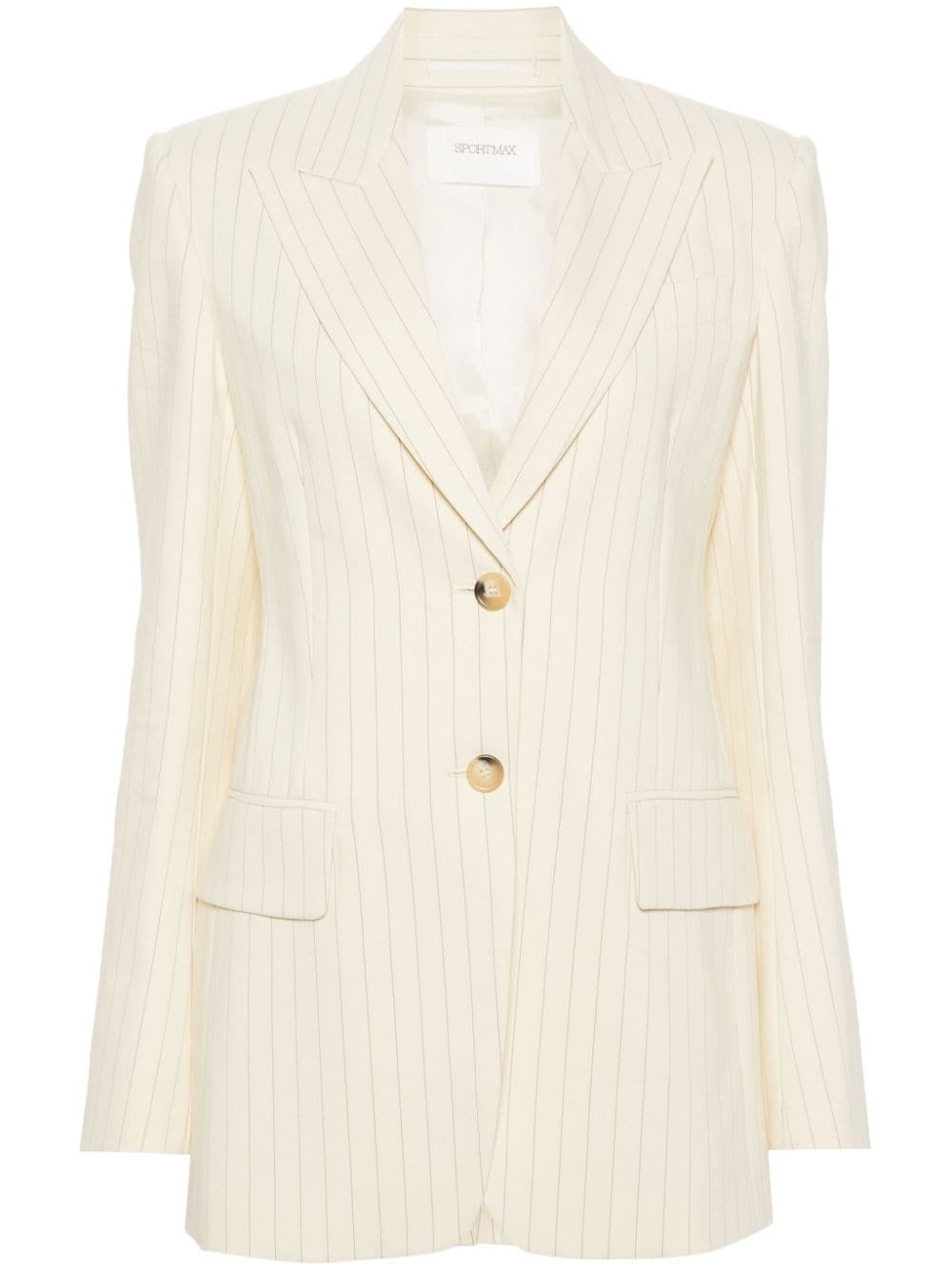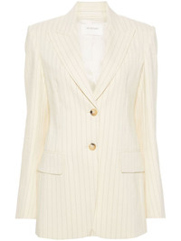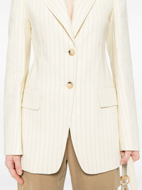 Aversa pinstriped blazer Highlights - Cream beige - Ramie blend - Pinstripe pattern - Peak lapels - Shoulder pads - Chest welt pocket - Long sleeves with faux buttoned cuffs - Dart detailing - Two front flap pockets - Central rear vent - Full lining - Straight hem - Front button fastening Imported Composition Outer: Ramie 58%, Viscose 38%, Spandex/Elastane 3%, Polyester 1% Lining: Viscose 97%, Acetate 70%, Polyester 30%, Spandex/Elastane 3% SIZE & FIT Model measurements Height 5 ft 9 in(1.75 m) Bust/Chest 34.64 in(88 cm) Hips 36.61 in(93 cm) Waist 26.37 in(67 cm) FittingInformation Designed for a slim fit that sits just away from the body offering a close yet comfortable fit The internal shoulder pads offer a structured shape Made from a midweight fabric This piece fits true to size – take your usual size