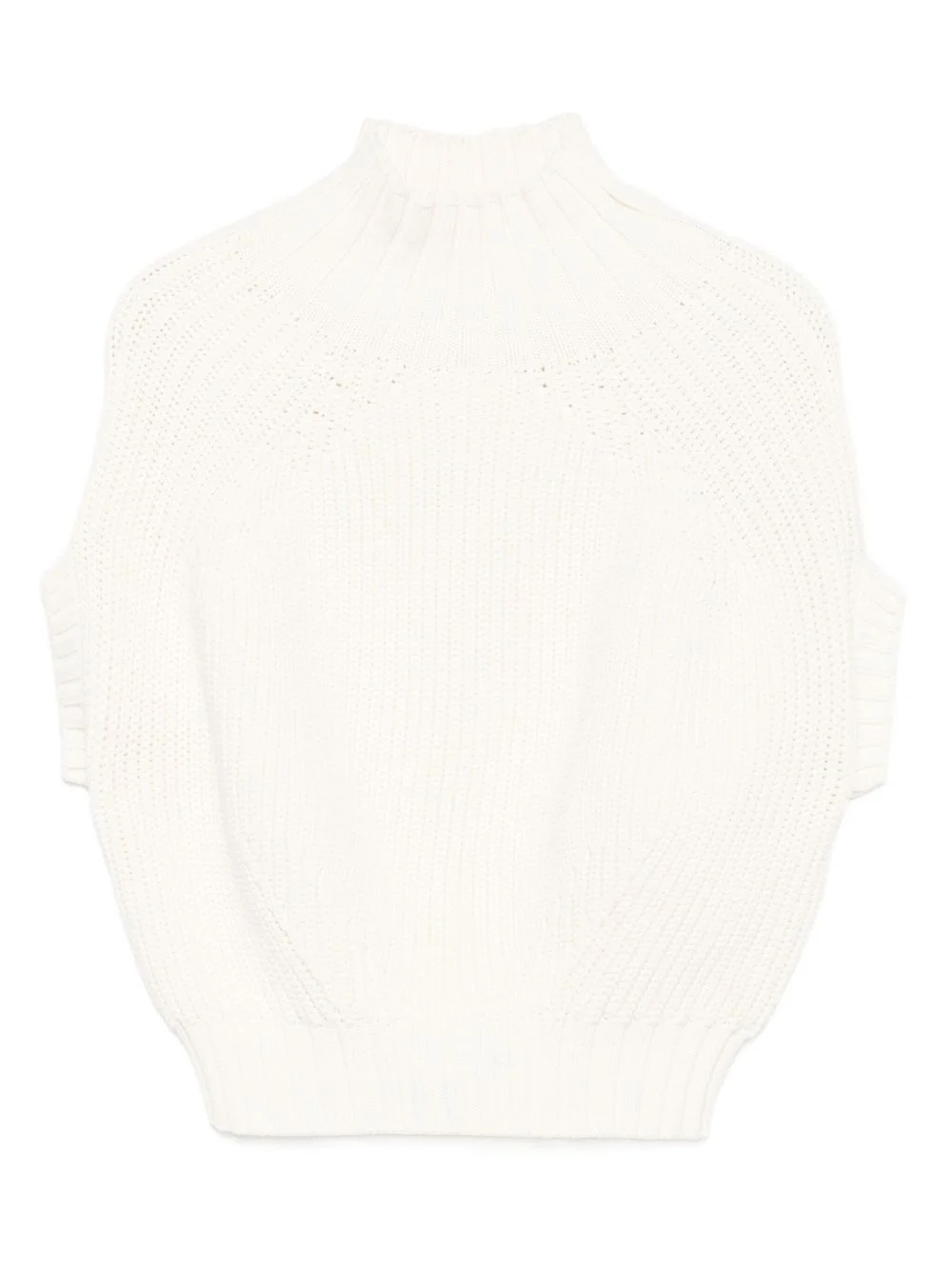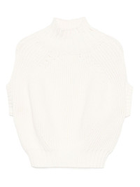 Balloon mock-neck knitted top Highlights - White - Ribbed collar, cuffs and hem - Mock neck - Short sleeves - Cotton-blend Imported Composition Cotton 62%, Polyamide 38% Washing instructions Dry Clean Only