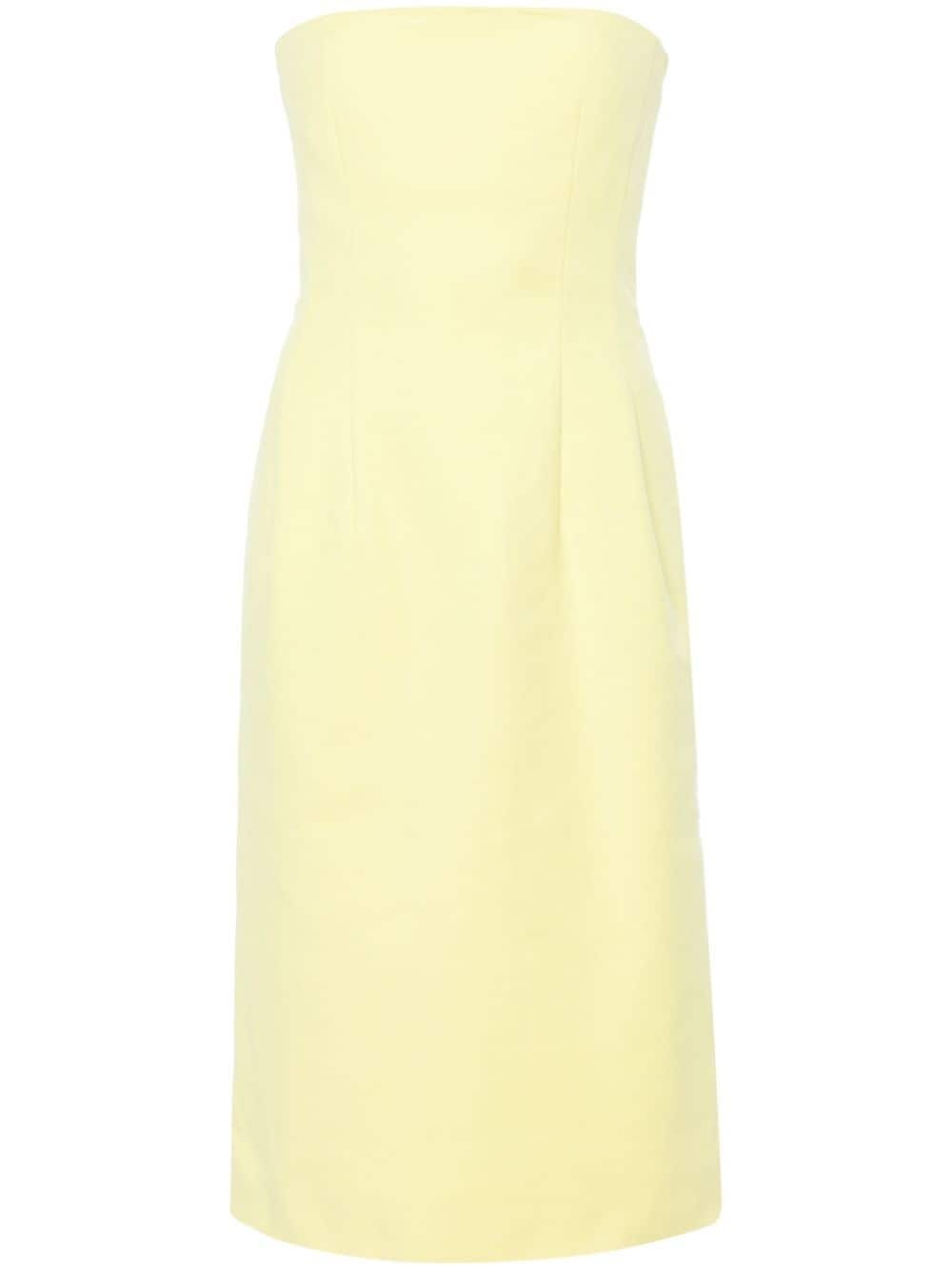 bandeau-style midi dress Highlights - Chartreuse - Cotton blend - Bandeau style - Two adjustable detachable shoulder straps - Boned bodice - Dart detailing - Central rear vent - Straight hem - Full lining - Concealed rear hook and zip fastening Imported Composition Outer: Cotton 98%, Elastane 2% Lining: Cotton 97%, Elastane 3% SIZE & FIT Model measurements Height 5 ft 10 in(1.77 m) Bust/Chest 29.92 in(76 cm) Hips 34.25 in(87 cm) Waist 23.62 in(60 cm) FittingInformation Designed for a close fit throughout The detachable straps offer an alternate way to wear this piece Made from a midweight stretch fabric, this piece offers elasticity and flexibility when worn This piece fits true to size – take your usual size Washing instructions Dry Clean Only