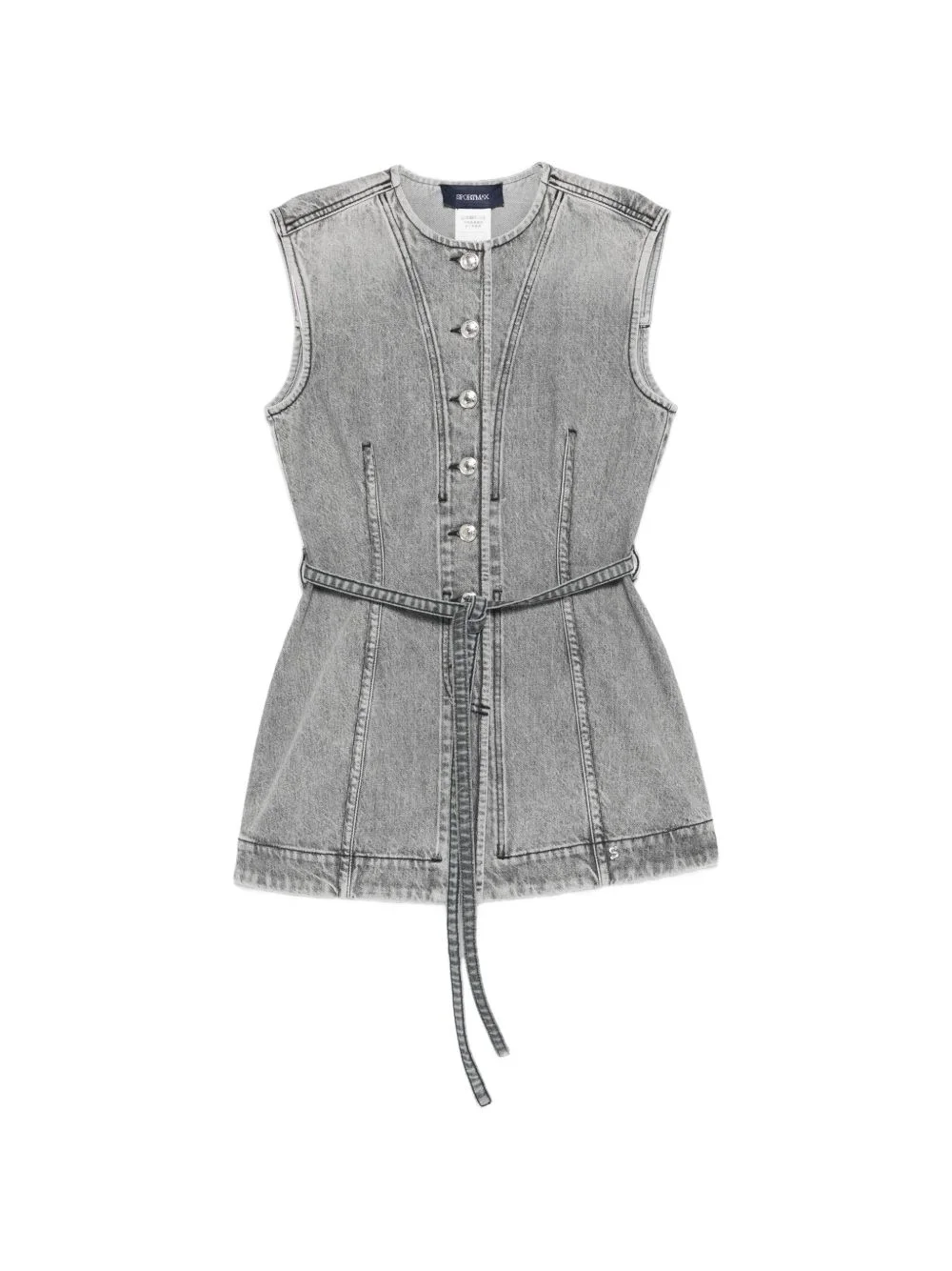 belt-detail vest Highlights - Grey - Sleeveless - Button fastening - Waist belt - Panelled design - Round neck Imported Composition Cotton 100% Washing instructions Machine Wash