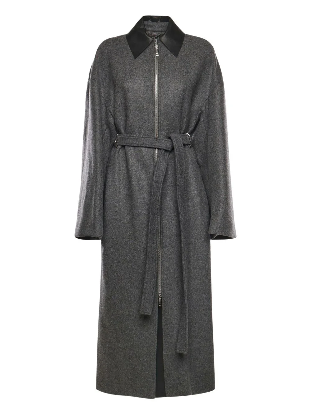 belted zip coat Highlights - Grey - Leather collar - Zip fastening - Belted - Long sleeves - Tonal stitching Imported Composition Virgin Wool 100% Washing instructions Read Manufacturer Guidelines