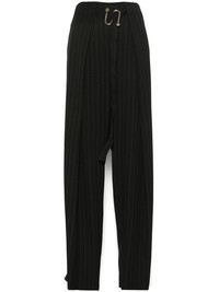 Berard trousers Highlights - Black - Hook and zip fly fastening - Two side slit pockets - Two rear welt pockets - Pinstripe pattern Made in Italy Composition Viscose 92%, Polyamide 7%, Polyester 1% SIZE & FIT Model measurements Height 5 ft 10 in(1.78 m) Bust/Chest 31.49 in(80 cm) Hips 37 in(94 cm) Waist 23.62 in(60 cm) FittingInformation Designed with a wide-leg cut, these trousers allow for a close fit at the waist and offer a loose and roomy fit over the leg The belt offers adjustability for fitted preferences Made from a midweight non-stretch fabric