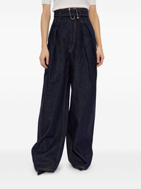Blanc jeans Highlights - Indigo blue - Concealed front fastening - Belted waist - Two side slit pockets - Two rear welt pockets Made in Italy Composition Cotton 100%
