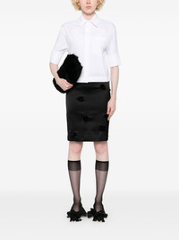 Borbona mini skirt Highlights - Black - Satin weave - Concealed rear hook and zip fastening - Mid-rise - Floral applique - Crystal embellishment - Dart detailing to the rear - Full lining - Straight hem - Above-knee length Imported Composition Outer: Acetate 74%, Polyamide 23%, Elastane 3% Lining: Acetate 62%, Polyester 38% SIZE & FIT Model measurements Height 5 ft 10 in(1.77 m) Bust/Chest 33.07 in(84 cm) Hips 37 in(94 cm) Waist 24.8 in(63 cm) FittingInformation This midi-length skirt is intended to be worn low on the hips Made from a midweight fabric
