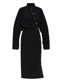 button-fastening shirt dress Highlights - Black - Shirt collar - Button detailing - Long sleeves - Wrap-effect bodice - Midi length Made in Italy Composition Viscose 100% Washing instructions Read Manufacturer Guidelines
