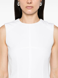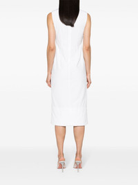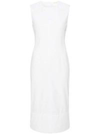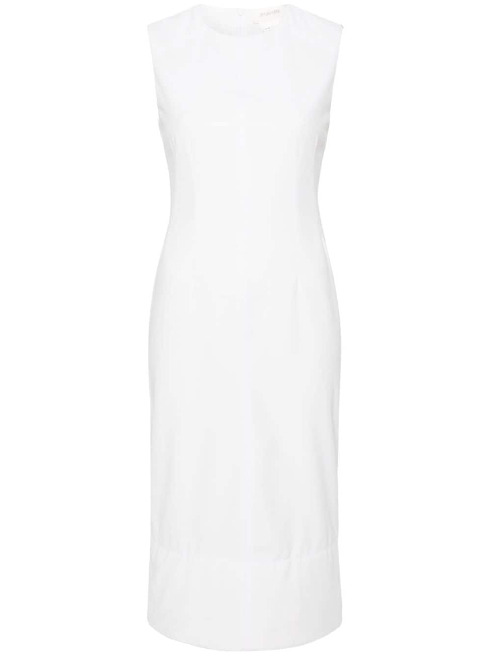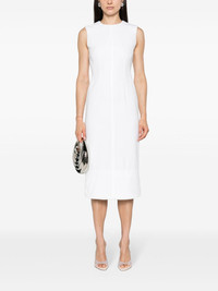 Cariddi crepe midi dress Highlights - White - Crepe texture - Padded design - Dart detailing - Round neck - Concealed rear zip fastening - Sleeveless - Straight hem - Mid-length - Full lining Made in Italy Composition Outer: Polyester 100% Lining: Polyester 100% SIZE & FIT Model measurements Height 5 ft 11 in(1.8 m) Bust/Chest 33.07 in(84 cm) Hips 37.4 in(95 cm) Waist 25.19 in(64 cm) FittingInformation Designed for a slim fit that sits just away from the body offering a close yet comfortable fit The dart stitching adds structure and a closer fit in the torso of this piece Made from a midweight non-stretch fabric, this piece offers minimal elasticity when worn This piece fits true to size – take your usual size