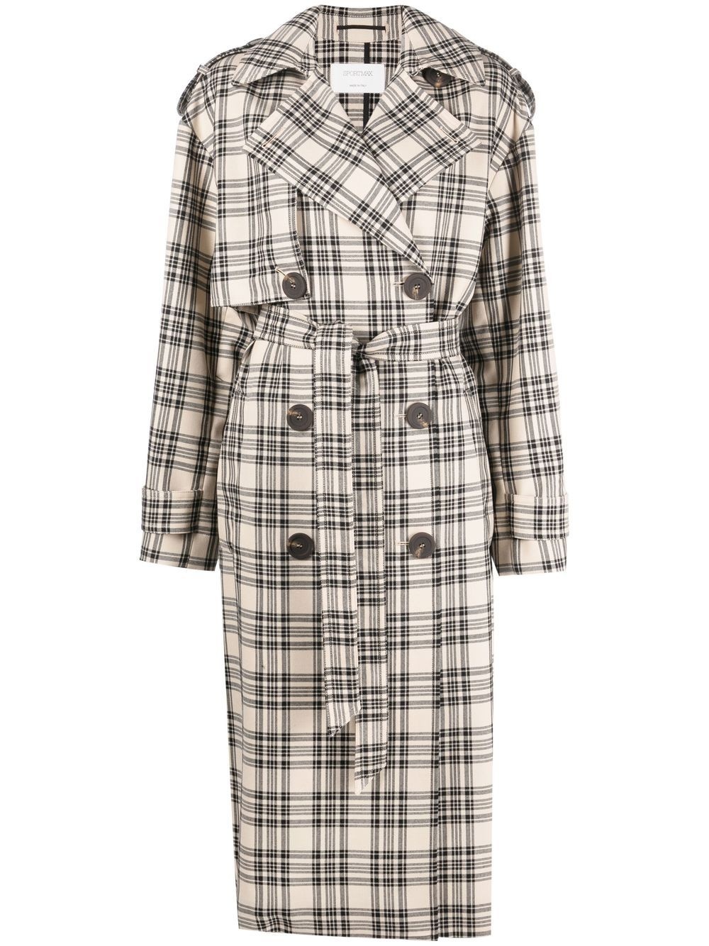 check-pattern belted coat check-pattern belted coat from Max Mara (VIP) featuring beige, black, virgin wool, check pattern, double-breasted button fastening, belted waist, two side slit pockets, long sleeves, storm flap, central rear vent and straight hem. Made in Italy Composition Virgin Wool 100% SIZE & FIT Model measurements Height 5 ft 10 in(1.77 m) Bust/Chest 29.92 in(76 cm) Hips 34.25 in(87 cm) Waist 23.62 in(60 cm) FittingInformation This piece fits true to size. We recommend you get your regular size Cut for a loose fit. Comes with an adjustable belt for a flexible fit at the waist Made with a mid-weight non-stretch fabric