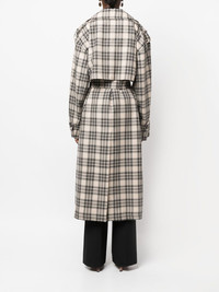 check-pattern belted coat