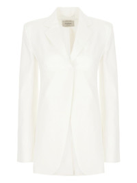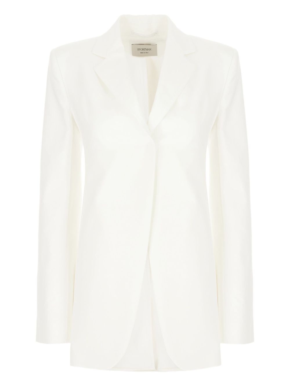 cotton blazer Highlights - White - Concealed front fastening - Notched lapels - Long sleeves - Curved hem Imported Composition Lining: Acetate 70%, Polyester 30% Outer: Cotton 100%, Viscose 95%, Elastane 5%