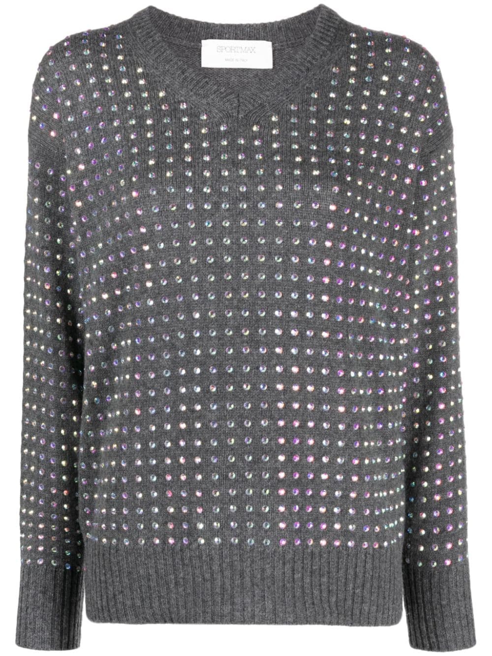 crystal-embellished V-neck jumper