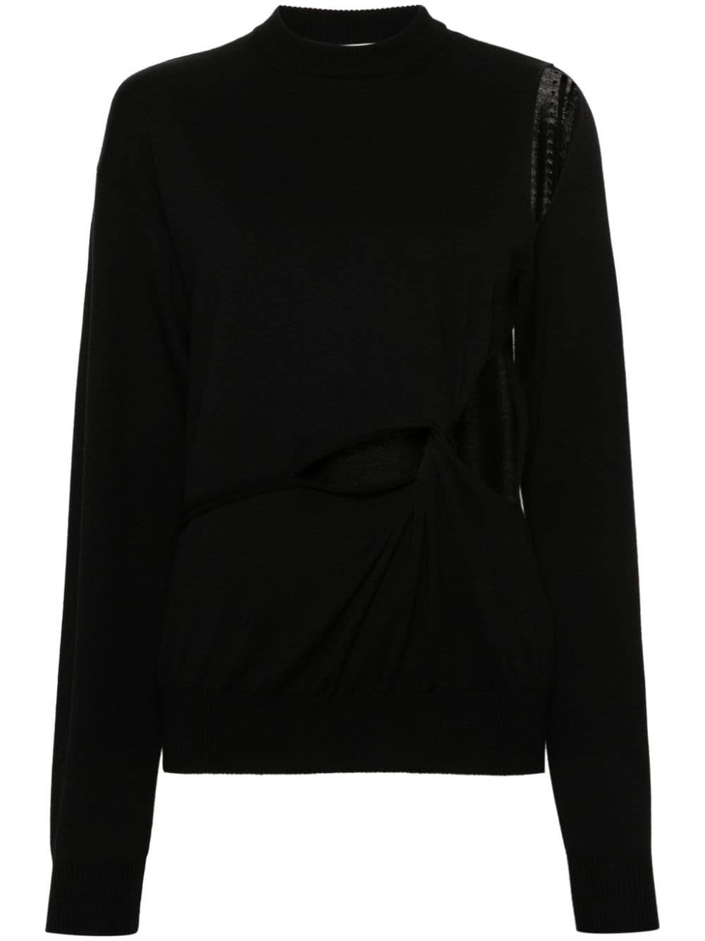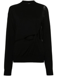 cut-out wool jumper Highlights - Black - Wool - Stretch-design - Knitted construction - Cut-out detailing - Crew neck - Long sleeves with ribbed cuffs - Knot detailing - Ribbed straight hem Made in Italy Composition Wool 100% SIZE & FIT Model measurements Height 5 ft 11 in(1.8 m) Bust/Chest 33.07 in(84 cm) Hips 37.4 in(95 cm) Waist 25.19 in(64 cm) FittingInformation Designed for a relaxed fit, this piece allows for comfort and movement when worn The ribbed hem offers a close, comfortable fit Made with a midweight knit, this piece offers some stretch This piece fits true to size – take your usual size
