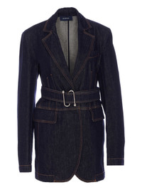denim blazer Highlights - Blue - Front button fastening - Detachable and adjustable waist belt - Classic lapels - Two side flap pockets Made in Italy Composition Cotton 100% Washing instructions Read Manufacturer Guidelines