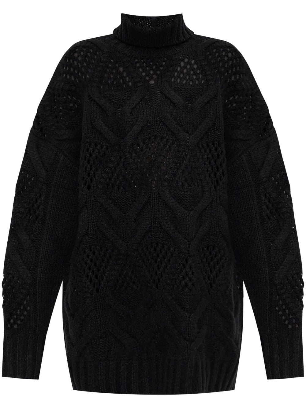 diamond-knit maxi jumper Highlights - Black - Wool-cashmere blend - Knitted construction - High neck - Long sleeves - Straight hem Made in Italy Composition Wool 70%, Cashmere 30%