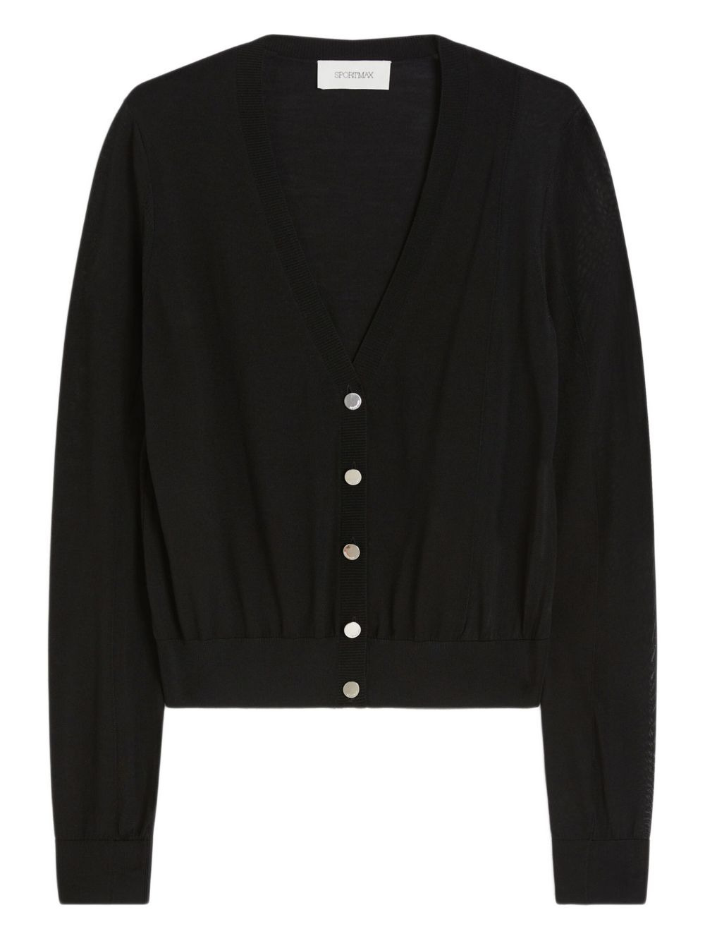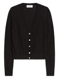 fine-knit cardigan Highlights - Black - V-neck - Ribbed-knit edges - Button closure Imported Composition Virgin Wool 100%, Viscose 100% Washing instructions Hand Wash