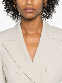 Frizzo blazer Highlights - Beige - Double-breasted button fastening - Jetted chest pocket - Two front flap pockets - Shoulder pads Imported Composition Nylon 100% SIZE & FIT Model measurements Height 5 ft 11 in(1.8 m) Bust/Chest 31.49 in(80 cm) Hips 35.82 in(91 cm) Waist 24.8 in(63 cm) FittingInformation Designed for a slim fit that sits just away from the body offering a close yet comfortable fit The internal shoulder pads offer a structured shape Made from a midweight stretch fabric, this piece offers elasticity and flexibility when worn