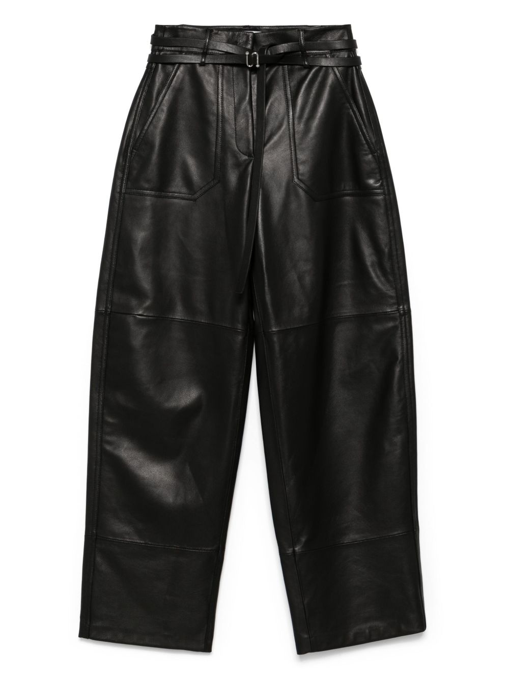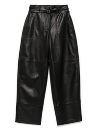 Garbo trousers Highlights - Black - Concealed front fastening - Belted waist - Two side patch pockets - Two rear welt pockets Imported Composition Lining: Polyester 97%, Elastane 3% Outer: Lambskin 100% SIZE & FIT Model measurements Height 5 ft 11 in(1.8 m) Bust/Chest 31.49 in(80 cm) Hips 36.61 in(93 cm) Waist 24.4 in(62 cm) FittingInformation Designed with a wide-leg cut, these trousers allow for a close fit at the waist and offer a loose and roomy fit over the leg The tie fastening gives an adaptable and personalised fit Soft leather has a supple and smooth construction offering some flexibility Washing instructions Specialist Cleaning