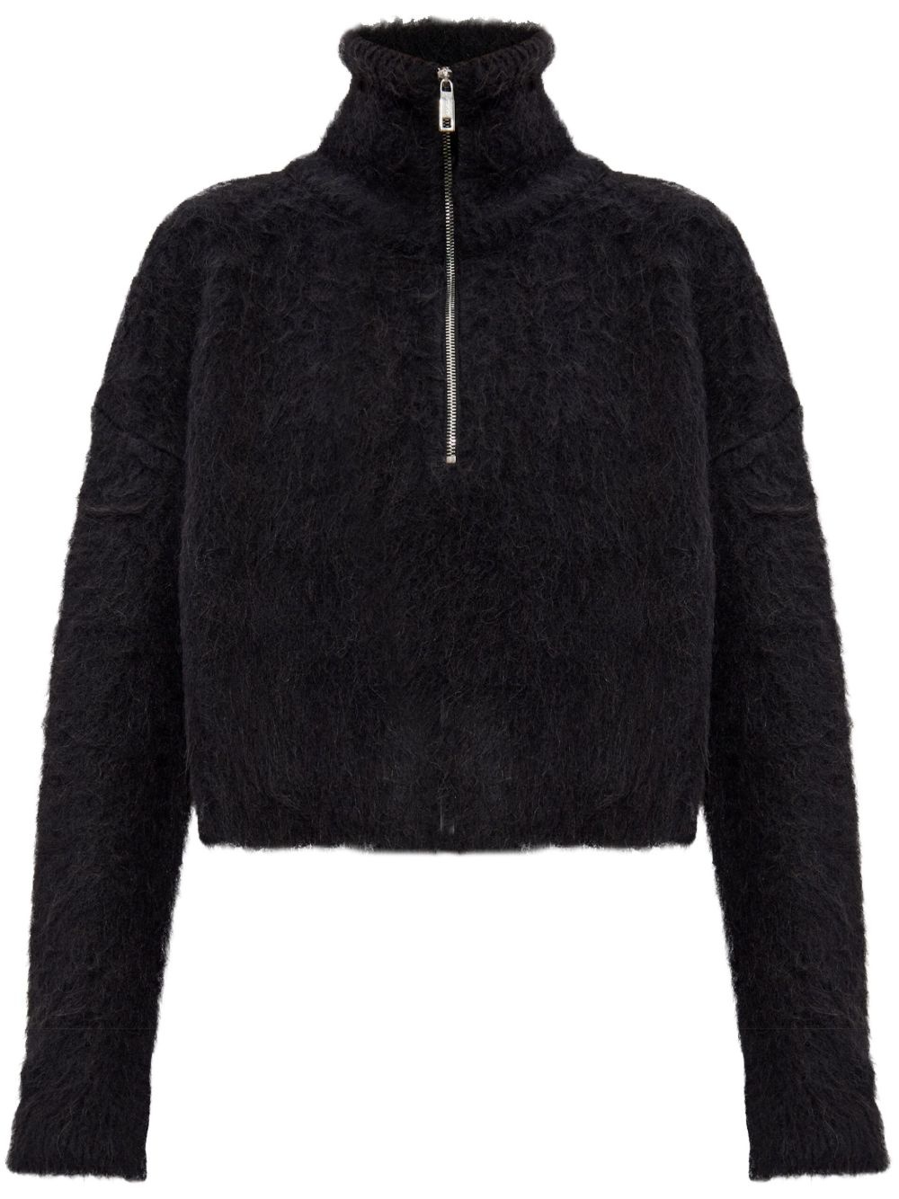 half-zip sweater Highlights - Black - Alpaca wool-blend - Knitted construction - Brushed finish - Half front zip fastening - High neck - Drop shoulder - Long sleeves - Cropped - Straight hem Made in Italy Composition Alpaca Wool 74%, Polyamide 24%, Elastane 2%