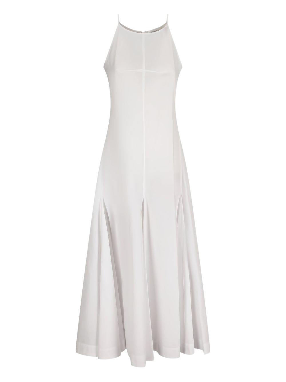 halterneck flared dress Highlights - White - Halterneck - Sleeveless - A-line skirt - Concealed zip fastening - Side seam splits Imported Composition Fabric 100% Washing instructions Read Manufacturer Guidelines