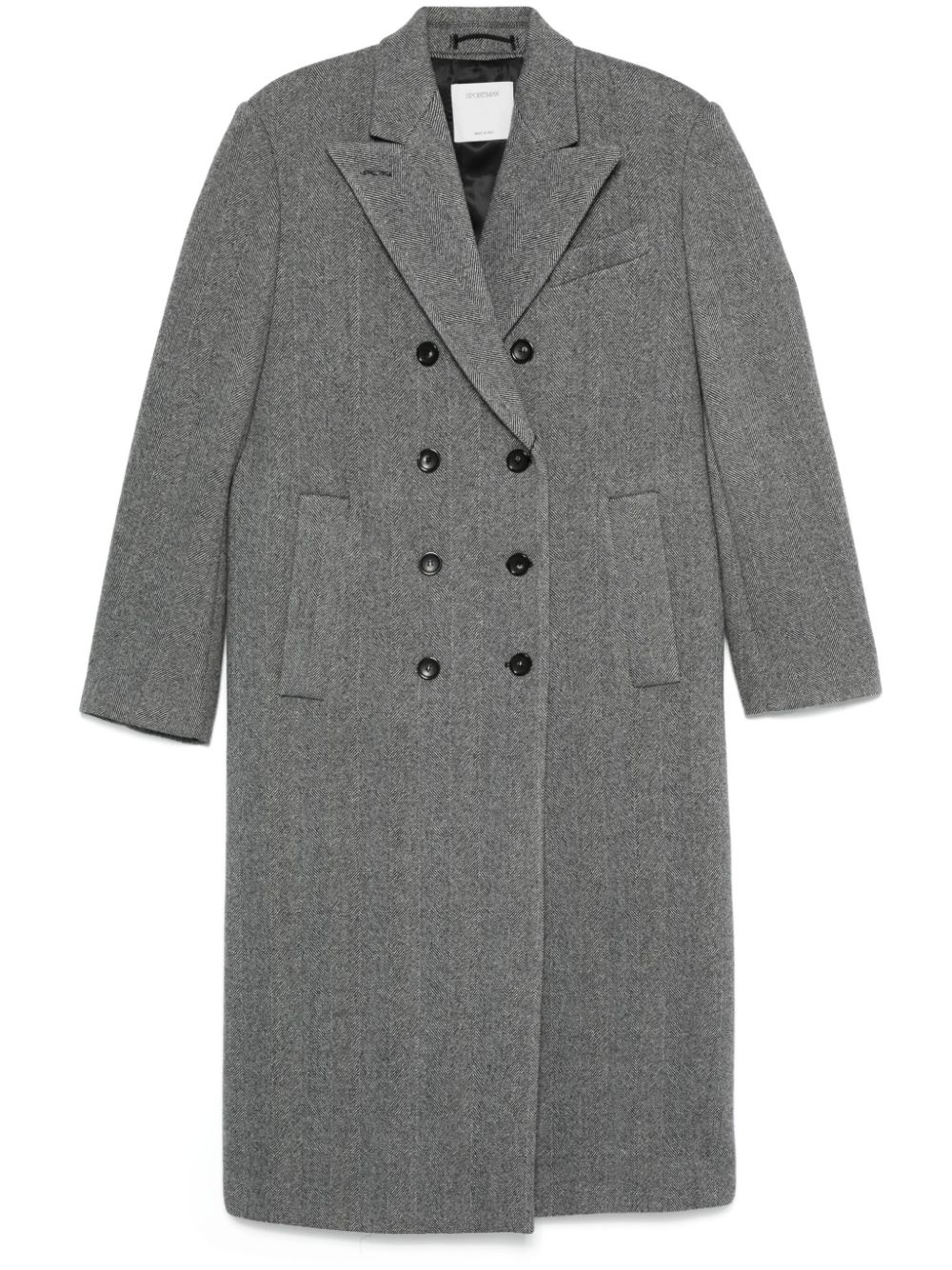 herringbone coat Highlights - Black/white - Virgin wool blend - Herringbone pattern - Double-breasted button fastening - Peak lapels - Shoulder pads - Long sleeves - Detachable waist belt - Chest welt pocket - Two side slit pockets - Central rear vent - Full lining - Straight hem - Long length Made in Italy Composition Outer: Virgin Wool 80%, Polyamide 20% Lining: Acetate 50%, Viscose 50%