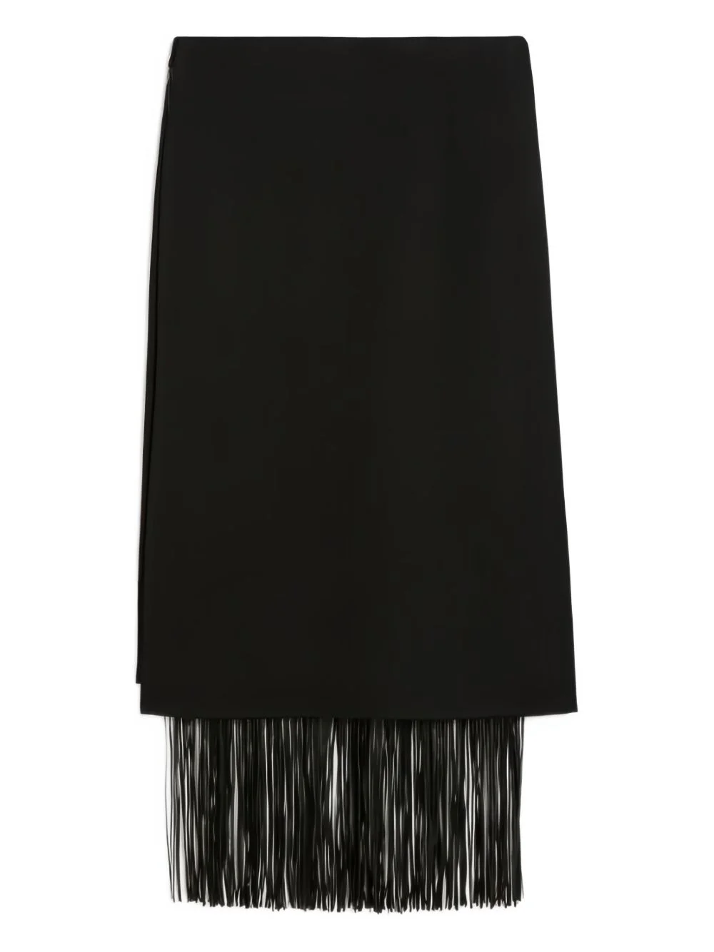 Hiberis fringed midi skirt Highlights - Black - Fringed hem - Midi length - Side zip fastening - High-waisted - Asymmetric design Imported Composition Cotton 53%, Viscose 47% Washing instructions Read Manufacturer Guidelines