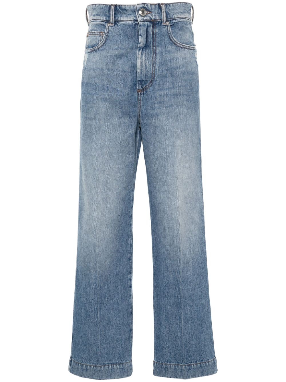 high-rise straight-leg jeans Highlights - Indigo blue - Cotton - Denim - Faded effect - Whiskering effect at the thighs - Distressed finish - Contrast stitching - Logo patch to the rear - Straight leg - High-rise - Concealed fly and button fastening - Belt loops - Classic five pockets - Straight hem Imported Composition Cotton 100% SIZE & FIT Model measurements Height 5 ft 9 in(1.76 m) Bust/Chest 31.88 in(81 cm) Hips 35.43 in(90 cm) Waist 24.8 in(63 cm) FittingInformation Designed for a straight-leg fit, these jeans allow for a close fit at the waist and an unrestricted and comfortable fit over the leg Sturdy and hard-wearing, this denim piece offers no stretch This piece fits true to size – take your usual size