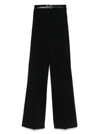 high-waisted trousers Highlights - Black - Concealed front button, hook and zip fastening - Slip pockets to the sides - Two rear welt pockets Imported Composition Viscose 70%, Polyamide 25%, Elastane 5% SIZE & FIT Model measurements Height 5 ft 11 in(1.8 m) Bust/Chest 31.49 in(80 cm) Hips 36.61 in(93 cm) Waist 24.4 in(62 cm) FittingInformation Designed with a flared hem, these trousers allow for a close fit at the waist with a slim fit over the leg and widening towards the hem Made from a midweight stretch fabric, this piece offers elasticity and flexibility when worn