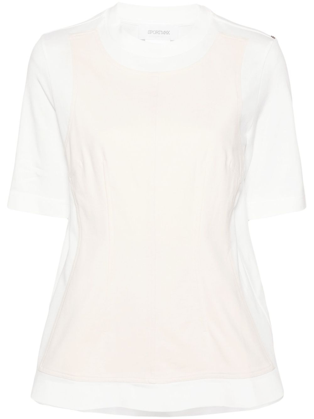 layered-effect T-shirt Highlights - White/beige - Cotton - Jersey texture - Layered effect - Seam detailing - Pleat detailing - Crew neck - Short sleeves - High-low hem Made in Italy Composition Cotton 100% SIZE & FIT Model measurements Height 5 ft 9 in(1.75 m) Bust/Chest 34.64 in(88 cm) Hips 36.61 in(93 cm) Waist 26.37 in(67 cm) FittingInformation Designed to be unstructured, offering a loose fit throughout Made from a midweight non-stretch fabric, this piece offers minimal elasticity when worn This piece fits true to size – take your usual size