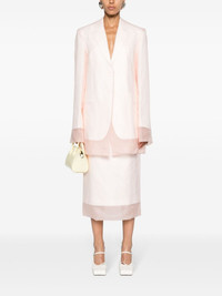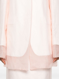 layered single-breasted balzer Highlights - Powder pink - Silk - Cotton-linen blend - Layered design - Notched lapels - Front button fastening - Shoulder pads - Long sleeves with buttoned cuffs - Chest welt pocket - Two front flap pockets - American rear vent - Straight hem - Satin lining Imported Composition Lining: Acetate 69%, Cupro 31% Outer: Silk 100%, Cotton 67%, Linen/Flax 33% SIZE & FIT Model measurements Height 5 ft 10 in(1.78 m) Bust/Chest 33.07 in(84 cm) Hips 36.61 in(93 cm) Waist 24.8 in(63 cm) FittingInformation Designed for an oversized fit, offering additional room throughout The vented hem offers movement at the rear Made from a midweight non-stretch fabric This piece fits true to size – take your usual size