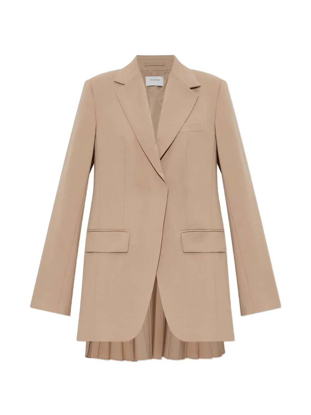 Mela pleated-detail blazer Highlights - Beige - Back pleats - Notched lapels - Flap pockets - Single-breasted - Long sleeves Made in Italy Composition Virgin Wool 55%, Polyester 45% Washing instructions Read Manufacturer Guidelines