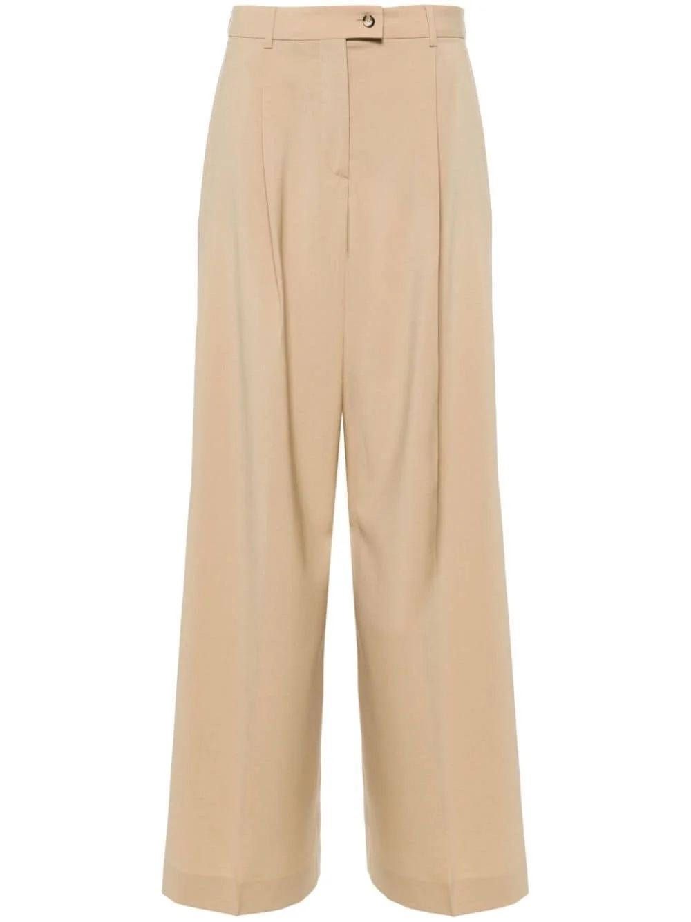 mid-rise palazzo trousers Highlights - Beige - Virgin wool - Interlock twill weave - Pleat detailing - Pressed crease - Mid-rise - Belt loops - Concealed fly and button fastening - Two side slit pockets - Two rear welt pockets - Palazzo design - Wide leg Made in Italy Composition Virgin Wool 100% SIZE & FIT Model measurements Height 5 ft 9 in(1.75 m) Bust/Chest 34.64 in(88 cm) Hips 36.61 in(93 cm) Waist 26.37 in(67 cm) FittingInformation Designed with a wide-leg cut, these trousers allow for a close fit at the waist and offer a loose and roomy fit over the leg Made from a midweight non-stretch fabric This piece fits true to size – take your usual size