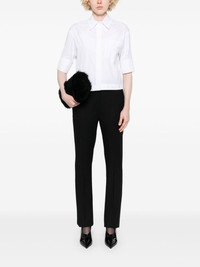 Mora 12 trousers Highlights - Black - Virgin wool blend - Flannel - Concealed front button, hook and zip fastening - Mid-rise - Belt loops - Pressed crease - Two side inset pockets - Crystal embellishment - Dart detailing - Rear welt pocket - Slim cut - Straight leg Imported Composition Virgin Wool 95%, Elastane 5% SIZE & FIT Model measurements Height 5 ft 9 in(1.75 m) Bust/Chest 34.64 in(88 cm) Hips 36.61 in(93 cm) Waist 26.37 in(67 cm) FittingInformation Designed for a slim fit, these trousers offer a close fit at the waist, allowing a comfortable close fit and some movement over the leg The unfinished hems allow for the length to be altered Made from a midweight stretch fabric, this piece offers elasticity and flexibility when worn