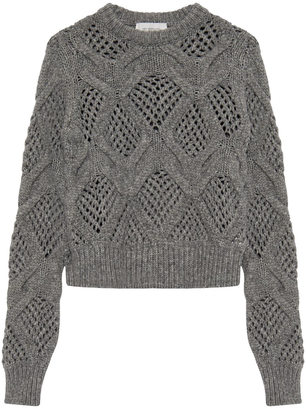 open-knit long-sleeve jumper Highlights - Grey - Wool blend - Knitted construction - Open knit - Long sleeves - Ribbed cuffs and hem - Straight hem - Cropped Made in Italy Composition Wool 70%, Polyamide 30%