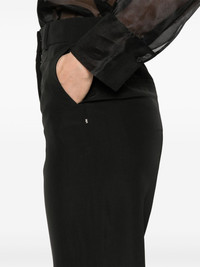 Orario trousers Highlights - Black - Concealed front button, hook and zip fastening - Belt loops - Two side slash pockets - Two rear welt pockets Made in Italy Composition Viscose 100% SIZE & FIT Model measurements Height 5 ft 11 in(1.8 m) Bust/Chest 33.07 in(84 cm) Hips 37.4 in(95 cm) Waist 25.19 in(64 cm) FittingInformation Designed with a flared hem, these trousers allow for a close fit at the waist with a slim fit over the leg and widening towards the hem Made from a midweight non-stretch fabric