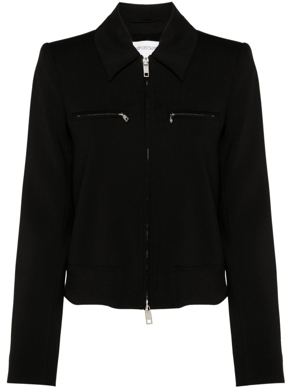 Plava bomber jacket Highlights - Black - Classic collar - Shoulder pads - Long sleeves - Buttoned cuffs - Two zip-fastening chest pockets - Ribbed hem - Full lining - Front two-way zip fastening Imported Composition Lining: Acetate 70%, Polyester 30% Outer: Virgin Wool 100%, Polyester 73%, Polyamide 23%, Spandex/Elastane 4% SIZE & FIT Model measurements Height 5 ft 10 in(1.78 m) Bust/Chest 31.49 in(80 cm) Hips 37 in(94 cm) Waist 23.62 in(60 cm) FittingInformation Designed for a relaxed fit, this piece allows for comfort and movement when worn The internal shoulder pads offer a structured shape Made from a midweight non-stretch fabric This piece fits true to size – take your usual size