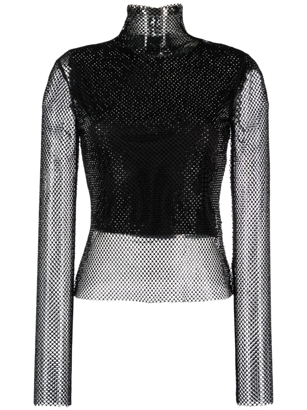 rhinestone-embellished mesh top Highlights - Black - Mesh design - Layered design - Rhinestone embellishment - High neck - Long sleeves - Straight hem Imported Composition Outer: Polyester 97%, Elastane 3% Lining: Viscose 100% Washing instructions Hand Wash