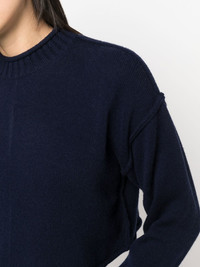 ribbed-knit cropped jumper ribbed-knit cropped jumper from Sportmax (VIP) featuring navy blue, wool-cashmere blend, ribbed detailing, high neck, long sleeves and cropped. Made in Italy Composition Wool 80%, Cashmere 20% SIZE & FIT Model measurements Height 5 ft 11 in(1.8 m) Bust/Chest 33.07 in(84 cm) Hips 37.4 in(95 cm) Waist 25.19 in(64 cm) FittingInformation This piece fits true to size. We recommend you get your regular size Cut for a loose fit Made with a mid-weight fabric