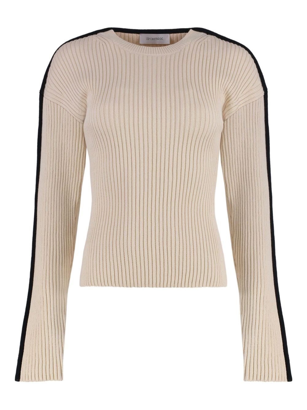 ribbed sweater Highlights - Light beige - Round neck - Long sleeves - Straight hem Imported Composition Cotton 68%, Polyester 32% Washing instructions Dry Clean Only