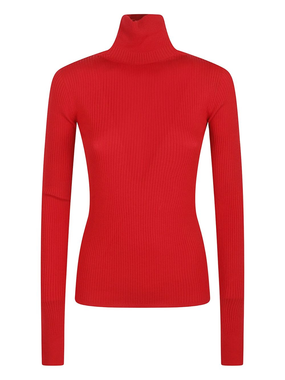 ribbed top Highlights - Red - Ribbed knit - Long sleeves - High neck Made in Italy Composition Wool 100% Washing instructions Read Manufacturer Guidelines