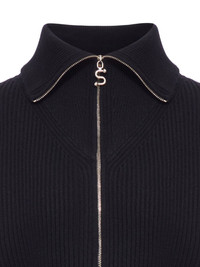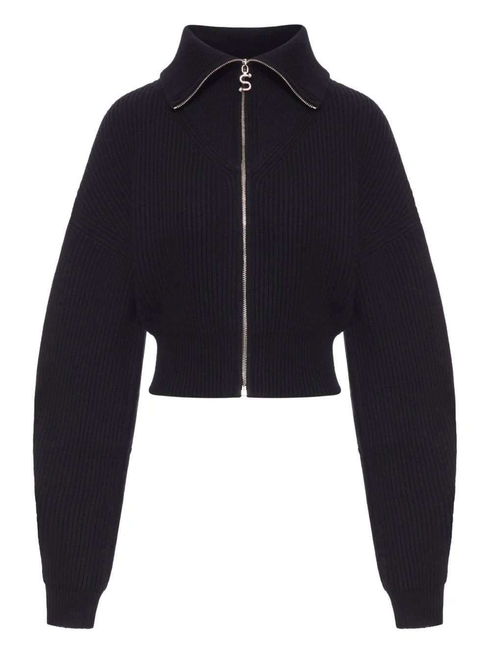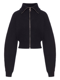 ribbed zip-up cardigan Highlights - Black - Ribbed knit - Zip fastening - Fold-over collar - Long sleeves - Cropped length Made in Italy Composition Wool 100% Washing instructions Read Manufacturer Guidelines