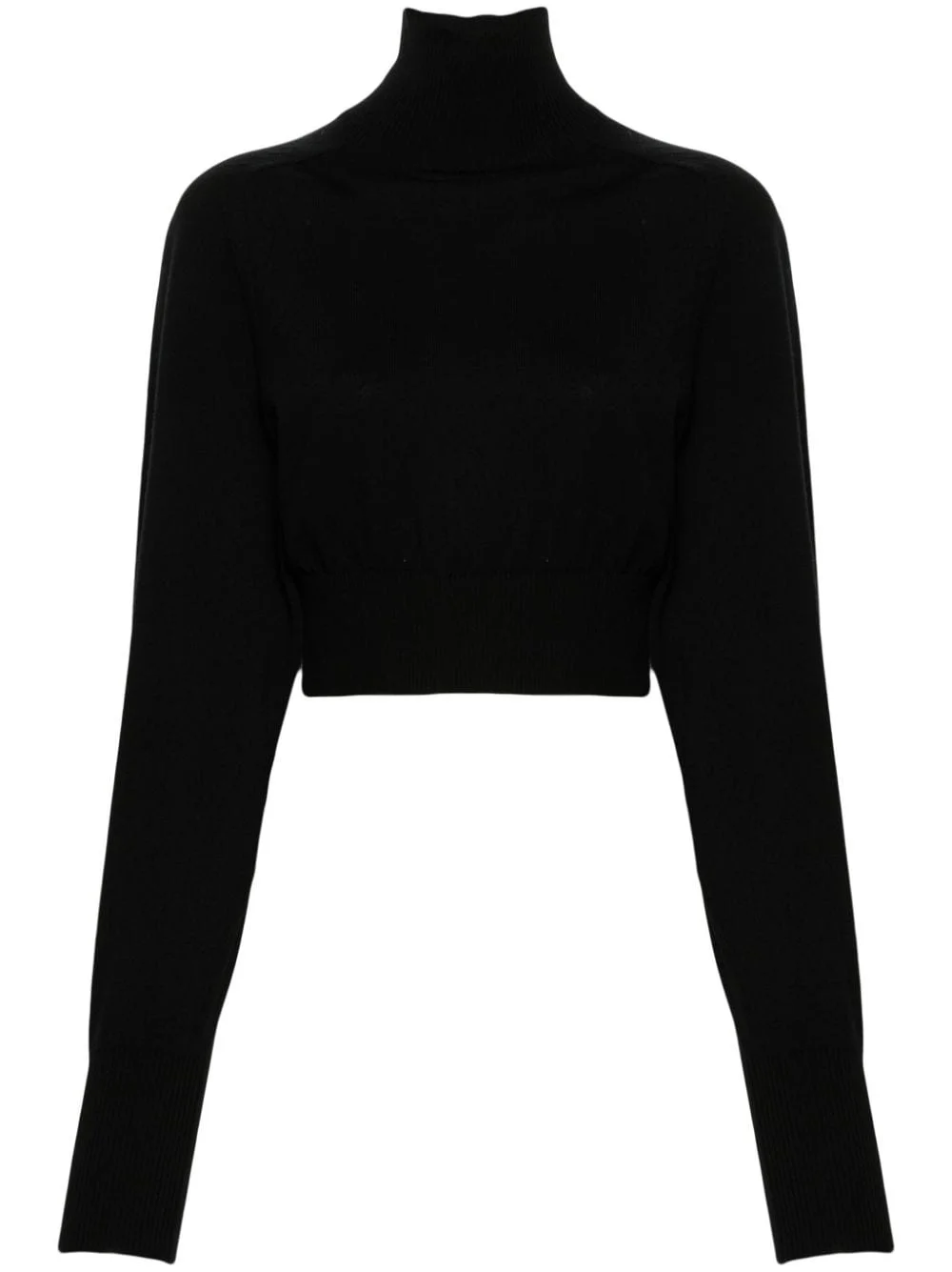 roll-neck wool jumper Highlights - Black - Wool - Fine knit - Roll neck - Long raglan sleeves - Ribbed cuffs and hem - Cropped Made in Italy Composition Outer: Wool 100% Lining: Wool 83%, Polyamide 16%, Elastane 1% SIZE & FIT Model measurements Height 5 ft 11 in(1.8 m) Bust/Chest 32.67 in(83 cm) Hips 36.22 in(92 cm) Waist 24.4 in(62 cm) FittingInformation Designed for a relaxed fit, this piece allows for comfort and movement when worn The ribbed hem offers a close, comfortable fit Made with a lightweight knit, this piece offers some stretch This piece fits true to size – take your usual size