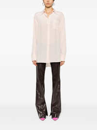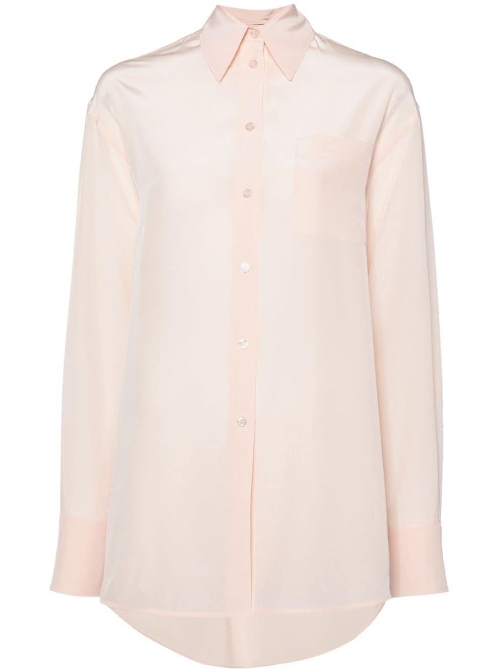 Rovigo silk shirt Highlights - Peach pink - Silk - Chiffon crepe - Spread collar - Long sleeves with buttoned cuffs - Chest patch pocket - Unlined - Curved hem - Front button placket Made in Italy Composition Silk 100% SIZE & FIT Model measurements Height 5 ft 9 in(1.76 m) Bust/Chest 31.88 in(81 cm) Hips 35.43 in(90 cm) Waist 24.8 in(63 cm) FittingInformation Designed to be unstructured, offering a loose fit throughout Made from a lightweight non-stretch fabric This piece fits true to size – take your usual size