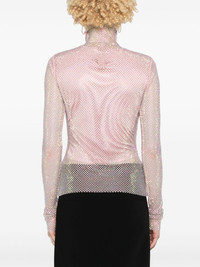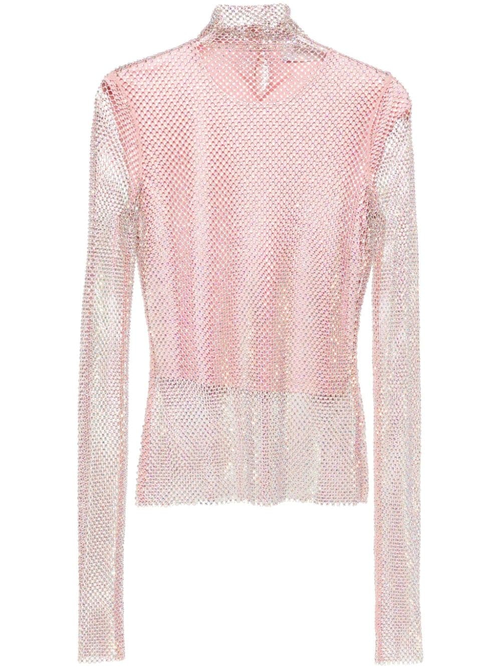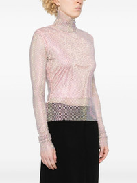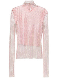 VALDAI Rhinestone mesh mock polo-neck sweater