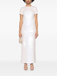 sequinned midi dress Highlights - Light beige - Concealed rear zip fastening - Rear hook and eye fastening - Round neck - Short sleeves Made in Italy Composition Outer: Polyester 100%, Polyamide 95%, Spandex/Elastane 5% Lining: Polyamide 94%, Spandex/Elastane 6% SIZE & FIT Model measurements Height 5 ft 10 in(1.78 m) Bust/Chest 32.67 in(83 cm) Hips 35.43 in(90 cm) Waist 23.22 in(59 cm) Measurement HIPS 33.85 in(86 cm) LENGTH 55.9 in(142 cm) WAIST 27.55 in(70 cm) FittingInformation Designed for a slim fit that sits just away from the body offering a close yet comfortable fit The vented hem offers movement at the rear Made from a midweight stretch fabric, this piece offers elasticity and flexibility when worn